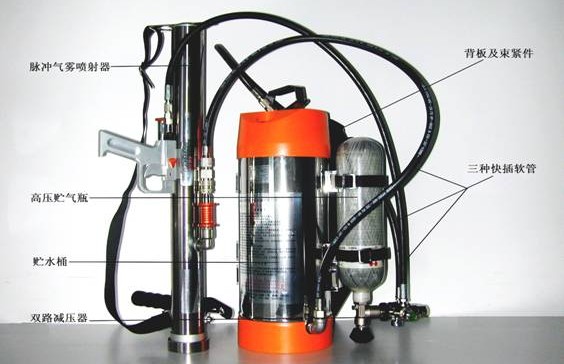 配置總成:噴射器,儲(chǔ)氣瓶,瓶頭閥,300/27/6巴雙極減壓閥,背架,壓力表,安全閥,噴射器進(jìn)水管,噴射器進(jìn)氣管,水箱,水箱進(jìn)氣管